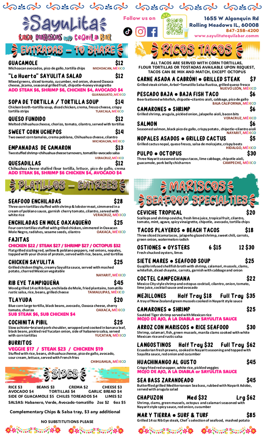 Shrimp, calamari, fish, mussels, and manila clams cooked with mexican rice and rustic salsa