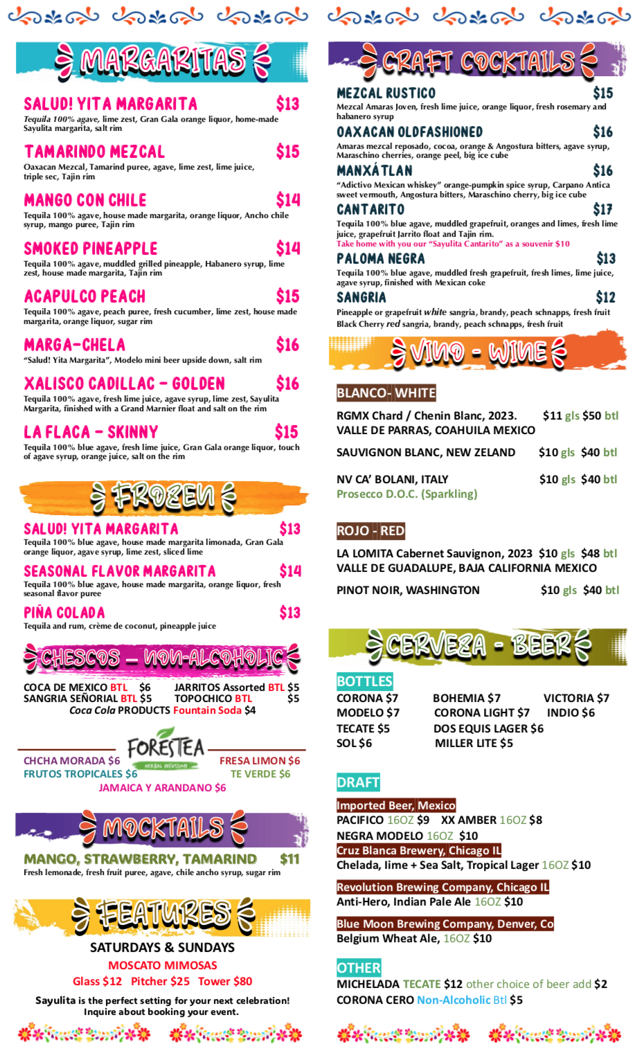 Tequila 100% agave, lime zest, gran gala orange liquor, home-made Sayulita margarita, salt rim
